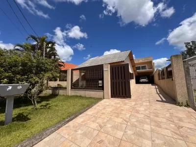 Sobrado composto por tres dormitorios,sendo dois suites, banheiro social,ampla sala de estar e jantar, cozinha com moveis planejados,churrasqueira,mobiliada,pé direito alto,abrigo para dois carros .Excelente posiçao solar,localizada entre Avenidas principais no Centro de Imbé.
