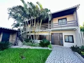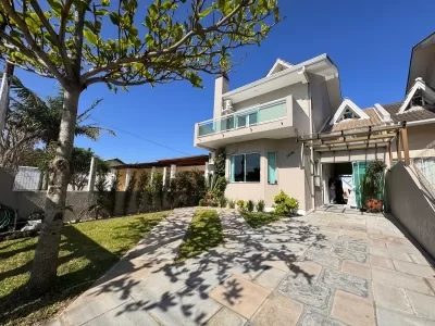 Lindo sobrado composto por 04 dormitórios sendo 03 suites, sala de estar com lareira, sala de jantar, cozinha com móveis sob medida, lavanderia, lavabo, piscina, quiosque com churrasqueira, anexo com 01 domritório e banheiro. Pátio individual frente e fundos. Garagem com churrasqueira. Madeiramento todo em Itauba e telha de concreto.